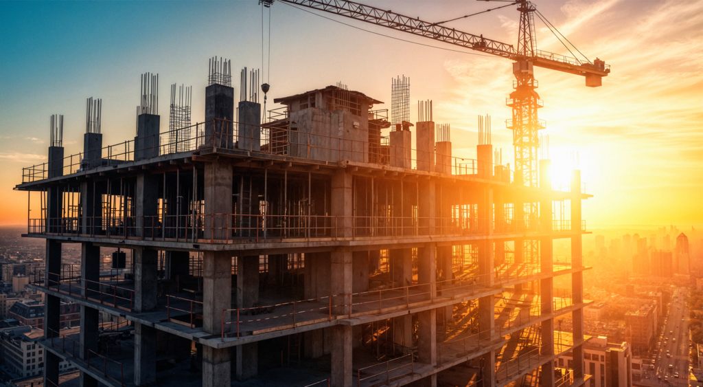 Izvodimo sve vrste radova koji čine 'kostur' građevine, uključujući zemljane radove, izradu temelja, zidarske i krovopokrivačke radove.